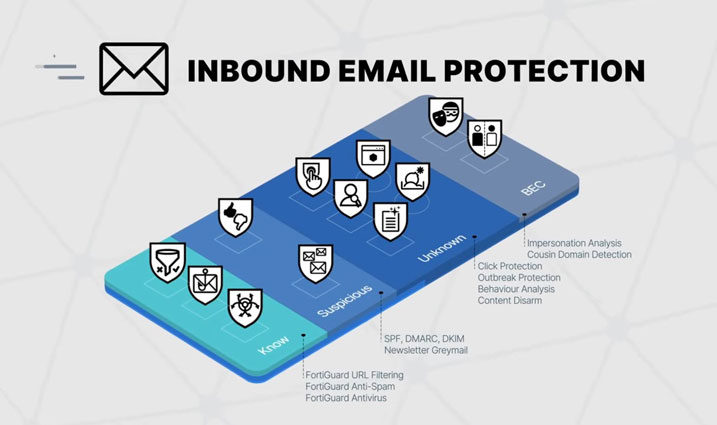 Fortinet FortiMail terintegrasi ke dalam Fortinet Security Fabric, meningkatkan perlindungan dengan kemampuan tingkat lanjut termasuk analisis file URL dan sandbox. Hal ini memungkinkan otomatisasi alur kerja termasuk respons melalui integrasi dengan solusi FortiSIEM dan FortiSOAR. FortiMail memberikan kinerja terbaik di kelasnya dalam keamanan email sebagaimana divalidasi oleh perusahaan pengujian independen.