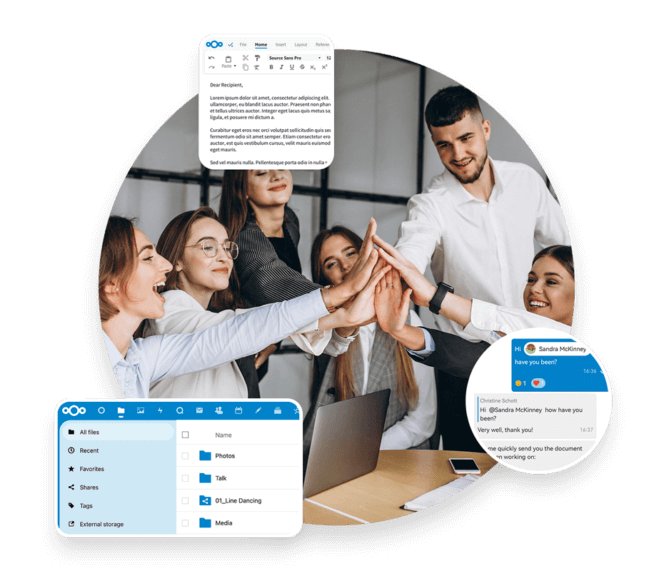 Nextcloud Enterprise menawarkan Platform Kolaborasi Konten yang modern dan mudah digunakan yang dapat diakses melalui antarmuka seluler, desktop, dan web. Tim berkolaborasi dengan lancar dalam dokumen real-time, mengobrol, dan terlibat dalam panggilan video, mengakses email, atau merencanakan rapat di kalender. Sebagai vendor perangkat lunak, Nextcloud tidak memaksa pelanggan untuk melakukan hosting di pusat datanya, namun bekerja sama dengan berbagai mitra terkemuka untuk menyediakan solusi SaaS atau on-premise.